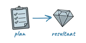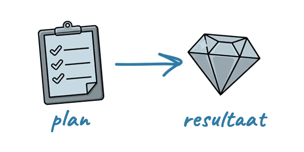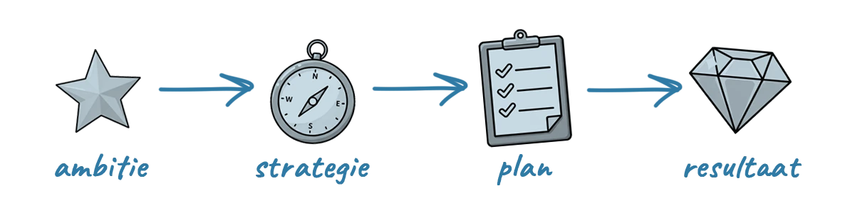 Dat is geen lineair, maar een iteratief proces. Inspanningen en resultaten meten we voortdurend.